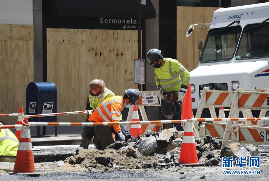 6月8日,工人在美國紐約的一處工地忙碌。在因新冠疫情進入“居家令”近三個月之后,美國紐約市于當?shù)貢r間8日開始“解封”,進入經(jīng)濟重啟的第一階段。新華社記者王迎攝