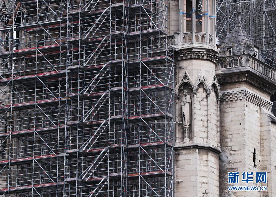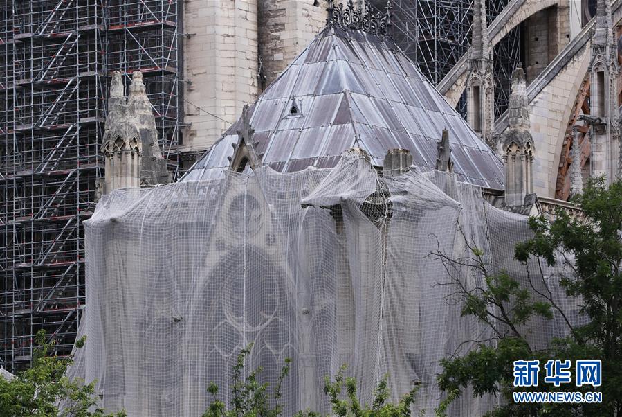 這是6月9日在法國巴黎拍攝的正在進行腳手架拆除工作的巴黎圣母院。法國巴黎圣母院于8日開始拆除去年大火中被焚的腳手架。作為巴黎圣母院修復工作的重要組成部分,這項工程預計將持續(xù)至少3個月。2019年4月15日,巴黎圣母院遭遇大火,當時圣母院正在進行維修,搭建的腳手架在火災中損毀、變形。新華社記者高靜攝