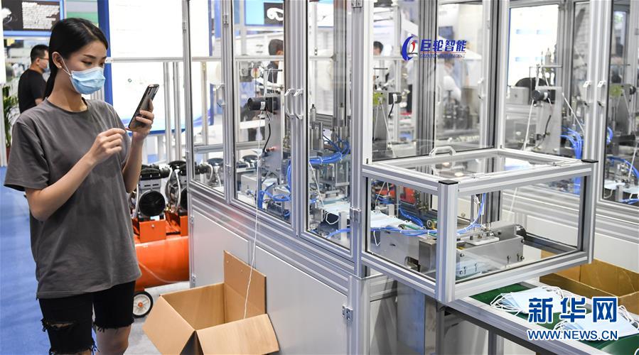 6月10日,觀眾拍攝展會(huì)上的一臺(tái)口罩生產(chǎn)設(shè)備。當(dāng)日,廣州國(guó)際防疫物資展覽會(huì)在保利世貿(mào)博覽館舉行。本次展會(huì)面積共計(jì)3.6萬(wàn)平方米,設(shè)有防疫產(chǎn)品、設(shè)備、綜合服務(wù)、原輔料等4個(gè)展區(qū),參展企業(yè)約600家。新華社記者鄧華攝