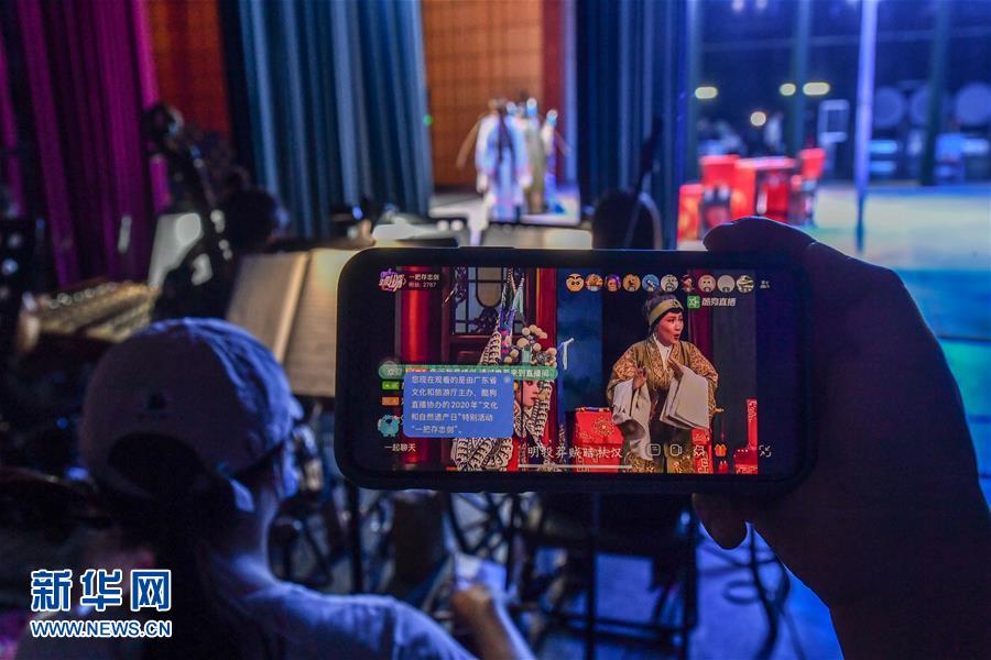 6月12日,粵劇經(jīng)典劇目《一把存忠劍》在酷狗直播間實(shí)時呈現(xiàn)。當(dāng)日,廣東粵劇院聯(lián)合酷狗網(wǎng)絡(luò)直播平臺推出“周末睇大戲(線上版)”,將線下劇場轉(zhuǎn)移到線上,在酷狗直播間里呈現(xiàn)粵劇的經(jīng)典劇目,為劇迷們打造一場“云端”盛宴。新華社記者 劉大偉 攝