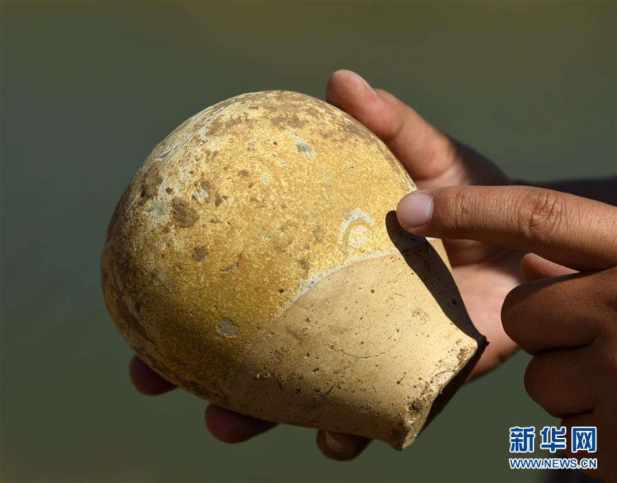 6月14日,在山東小清河章丘段考古發(fā)掘現(xiàn)場(chǎng),考古工作者展示出土的瓷瓶。近日,濟(jì)南市考古研究所考古工作隊(duì)在對(duì)小清河章丘段進(jìn)行考古調(diào)查和勘探時(shí),發(fā)現(xiàn)了13座年代集中在北朝末期至唐朝初期的古墓。新華社記者 王凱 攝