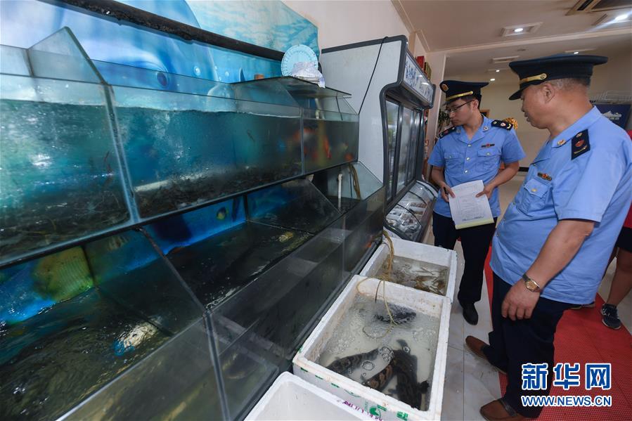 6月17日,市場監(jiān)管執(zhí)法人員在東林鎮(zhèn)一家農(nóng)家樂內(nèi)開展專項(xiàng)執(zhí)法行動,檢查是否存在非法經(jīng)營和加工野生動物的情況。新華社記者 徐昱 攝