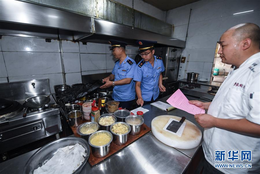 6月17日,市場(chǎng)監(jiān)管執(zhí)法人員在東林鎮(zhèn)一家農(nóng)家樂內(nèi)開展專項(xiàng)執(zhí)法行動(dòng),檢查是否存在非法經(jīng)營(yíng)和加工野生動(dòng)物的情況。新華社記者 徐昱 攝