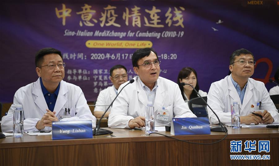 6月17日,寧夏醫(yī)科大學(xué)總醫(yī)院專家與羅馬第一公共醫(yī)療衛(wèi)生中心醫(yī)務(wù)人員進行視頻交流。當(dāng)日,寧夏醫(yī)科大學(xué)總醫(yī)院專家通過視頻連線,與意大利羅馬第一公共醫(yī)療衛(wèi)生中心一線醫(yī)務(wù)人員分享防疫抗疫經(jīng)驗,共克時艱。新華社記者 王鵬 攝