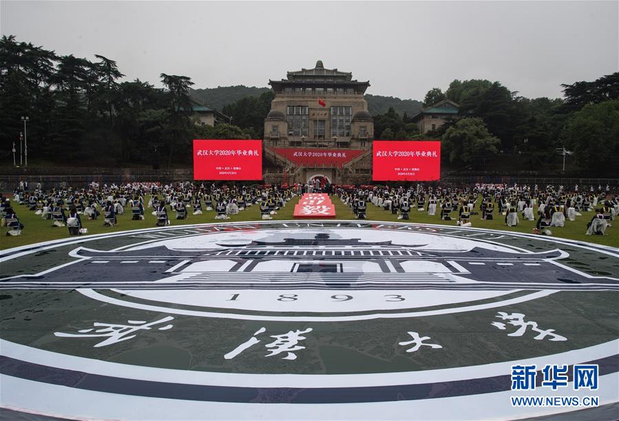 當(dāng)日,武漢大學(xué)舉辦2020年畢業(yè)典禮,以畢業(yè)生線上參加為主,少量畢業(yè)生代表在學(xué)校操場參加。