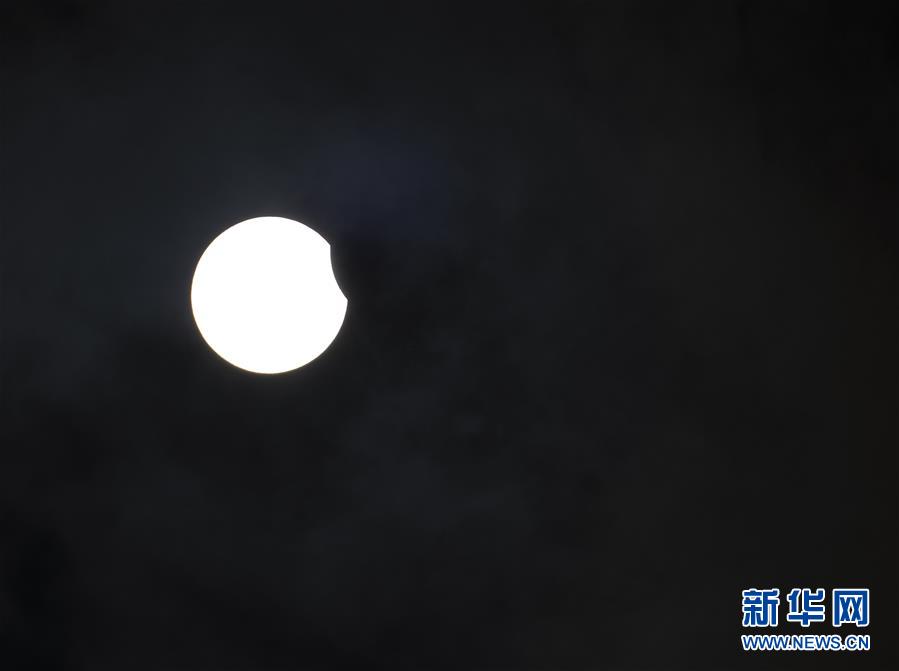 在拉薩觀賞到的日食(6月21日攝)?!叭窄h(huán)食”天文景觀于6月21日“夏至日”下午在天宇上演。新華社記者 普布扎西 攝