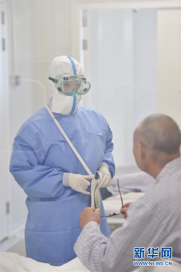 6月19日,在北京地壇醫(yī)院隔離病房內(nèi),護士給新入住的病人做檢查。新華社記者彭子洋攝