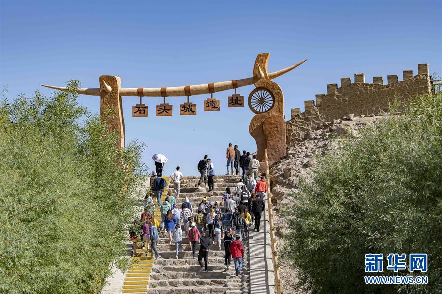 游客在新疆塔什庫爾干塔吉克自治縣石頭城遺址觀光游玩(6月21日攝)。新華社記者胡虎虎攝
