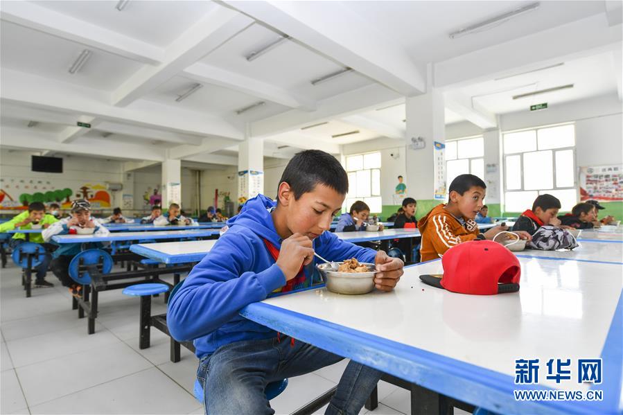 新疆塔什庫爾干塔吉克自治縣城鄉(xiāng)寄宿制小學(xué)學(xué)生在吃營養(yǎng)午餐(6月3日攝)。新華社記者胡虎虎攝