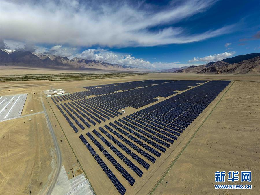 深圳援建的新疆塔什庫爾干塔吉克自治縣2萬千瓦太陽能光伏扶貧電站(6月15日攝,無人機(jī)照片)。新華社記者胡虎虎攝
