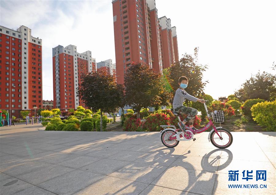 一名小朋友在遼寧省遼陽市遼陽縣劉二堡鎮(zhèn)前杜村居民小區(qū)內(nèi)騎自行車玩耍(6月1日攝)。新華社記者楊青攝
