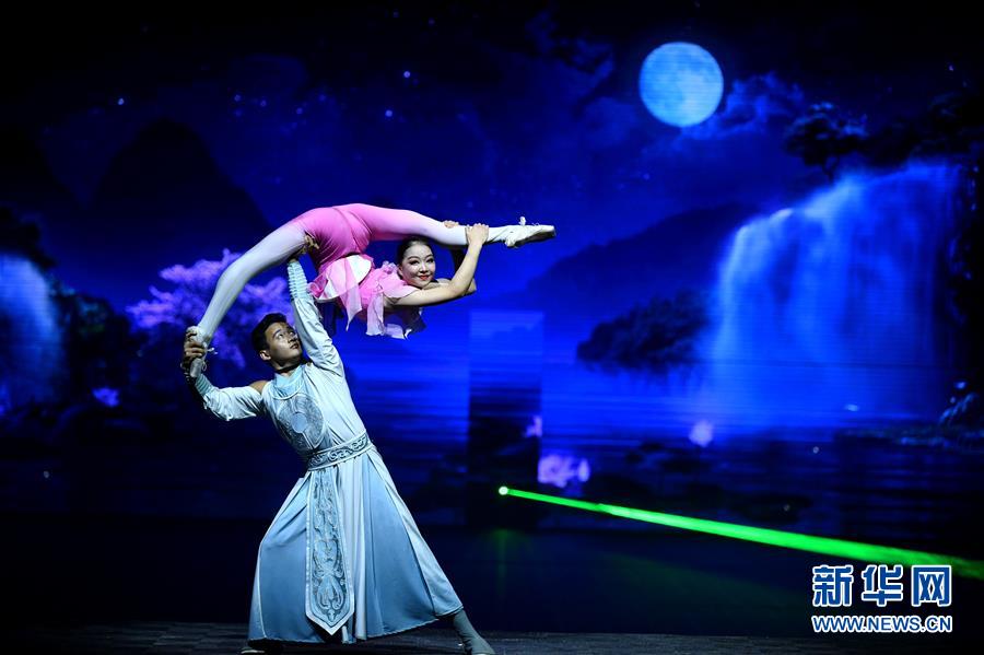 6月22日拍攝的《西安千古情》演出現(xiàn)場。大型舞臺劇《西安千古情》22日在西安浐灞世博園首演。該劇以一位華裔少女歸國尋根為故事主線,濃縮展現(xiàn)了古城西安的悠久歷史文化。新華社記者張博文攝