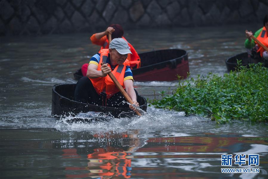 6月23日,東林鎮(zhèn)村民劃著菱桶采收荷花和蓮蓬。當(dāng)日,浙江省湖州市東林鎮(zhèn)在泉心村荷花池舉辦“慶端午劃菱桶”趣味活動(dòng)。村民們劃著菱桶在水面上你追我趕,同時(shí)采收荷花和蓮蓬,呈現(xiàn)出水鄉(xiāng)特有的端午節(jié)日氛圍。在河網(wǎng)密布的東林鎮(zhèn),菱桶是水鄉(xiāng)家家戶戶都有的一種傳統(tǒng)水上勞動(dòng)工具,村民在捕魚、采菱、采荷時(shí)都要用到。新華社記者徐昱攝