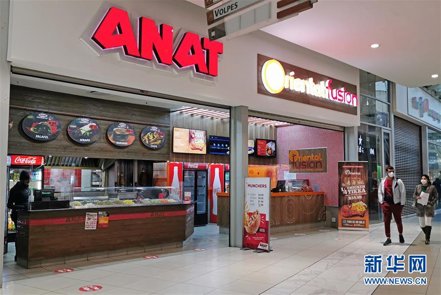 6月22日,市民走過南非約翰內(nèi)斯堡一家商場內(nèi)的快餐店。南非衛(wèi)生部22日說,過去24小時該國新增確診病例4288例,累計確診101590例,占非洲大陸確診總數(shù)約三分之一;累計死亡1991例。南非的單日新增確診病例已連續(xù)多天保持在4000例以上。新華社記者陳誠攝