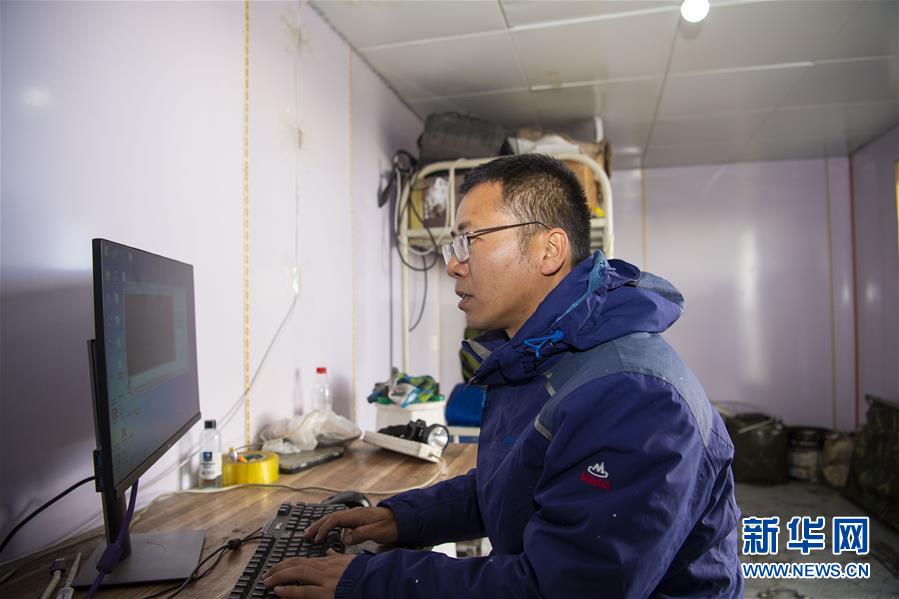 在中國科學(xué)院新疆天文臺慕士塔格觀測站,馮國杰打開軟件,調(diào)試設(shè)備(6月15日攝)。新華社記者胡虎虎攝