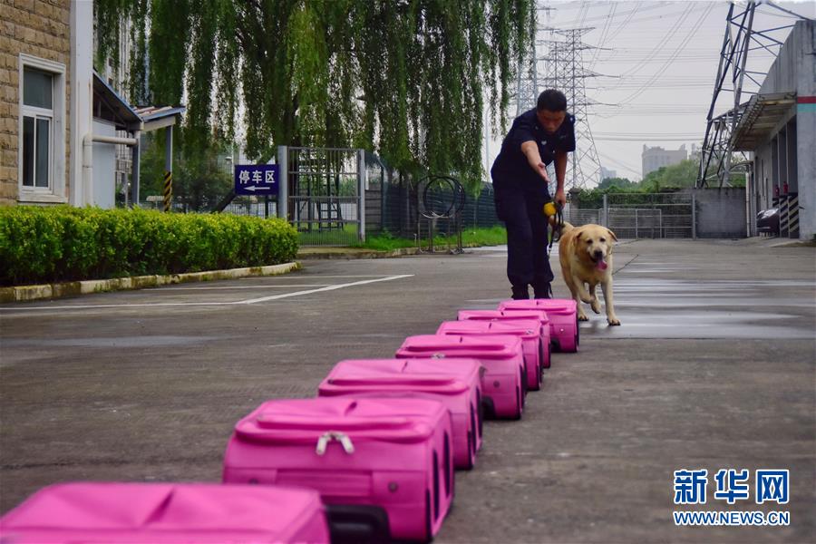 6月24日,緝毒犬“多多”在訓(xùn)練中。