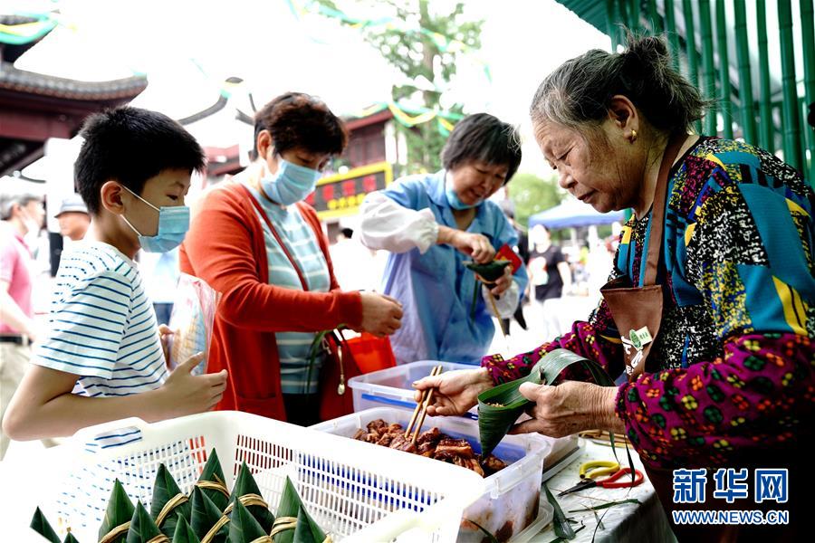 6月24日,游客在上海閔行區(qū)召稼樓古鎮(zhèn)一攤位學包粽子。當日,“我們的節(jié)日·召樓粽情”2020年閔行浦江端午文化節(jié)開幕。端午節(jié)臨近,各地舉行包粽子、做香包、賽龍舟等豐富多彩的民俗文化活動,迎接傳統(tǒng)佳節(jié)的到來。新華社記者張建松攝