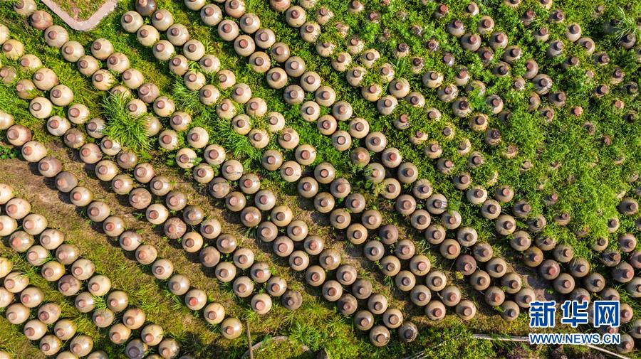6月26日在曾氏曬醋廠拍攝的晾曬的醋壇(無(wú)人機(jī)照片)。新華社記者 陶亮 攝