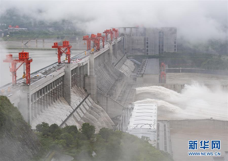 6月29日,三峽樞紐開啟泄洪孔泄洪。受長江中上游強降雨影響,進入三峽水庫的水量持續(xù)增多。為騰出一定庫容迎接近期可能到來的洪水,三峽樞紐于6月29日上午開啟兩個泄洪孔,加大下泄流量。這是三峽樞紐今年首次泄洪。28日14時,三峽水庫入庫流量達4萬立方米/秒,是27日14時的兩倍。為應對此輪來水,長江防總要求將三峽水庫下泄流量上調(diào)至日均3.5萬立方米/秒。新華社發(fā)(鄭家裕攝)