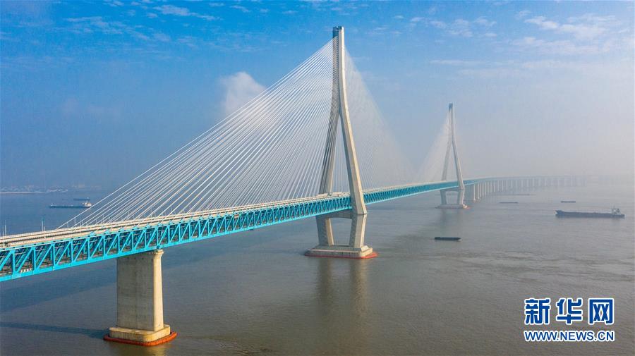 滬蘇通長(zhǎng)江公鐵大橋(6月29日攝,無(wú)人機(jī)照片)。即將于7月1日通車的滬蘇通長(zhǎng)江公鐵大橋北起江蘇南通,南至江蘇張家港,公鐵合建跨江正橋全長(zhǎng)5827米,為集合高速公路、客貨混線鐵路、高速鐵路的“三合一”過(guò)江通道,建成通車后將有效促進(jìn)長(zhǎng)三角城市群跨江融合、協(xié)同發(fā)展。新華社記者季春鵬攝