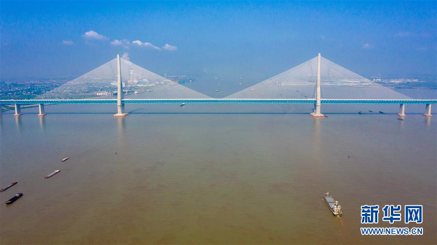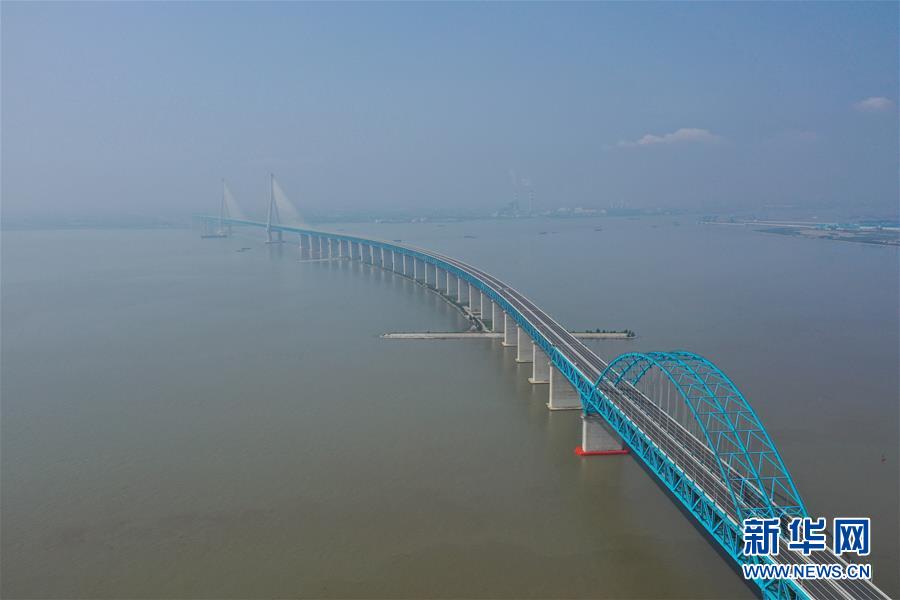 滬蘇通長(zhǎng)江公鐵大橋(6月29日攝,無(wú)人機(jī)照片)。即將于7月1日通車的滬蘇通長(zhǎng)江公鐵大橋北起江蘇南通,南至江蘇張家港,公鐵合建跨江正橋全長(zhǎng)5827米,為集合高速公路、客貨混線鐵路、高速鐵路的“三合一”過(guò)江通道,建成通車后將有效促進(jìn)長(zhǎng)三角城市群跨江融合、協(xié)同發(fā)展。新華社記者李博攝