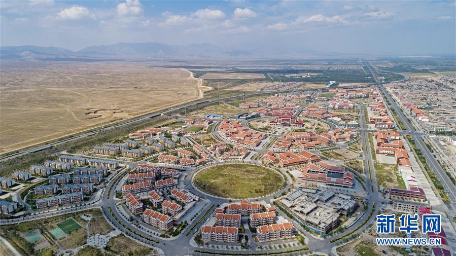 這是2019年9月3日拍攝的寧夏銀川市永寧縣閩寧鎮(zhèn)新鎮(zhèn)建設(shè)全景(無人機(jī)照片)。新華社記者王鵬攝