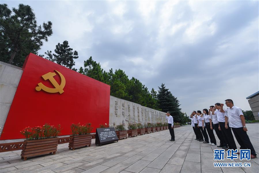 7月1日,嘉興市新冠肺炎疫情抗疫一線黨員在南湖景區(qū)的南湖革命紀念館參加“七一”重溫入黨誓詞活動。新華社記者徐昱攝