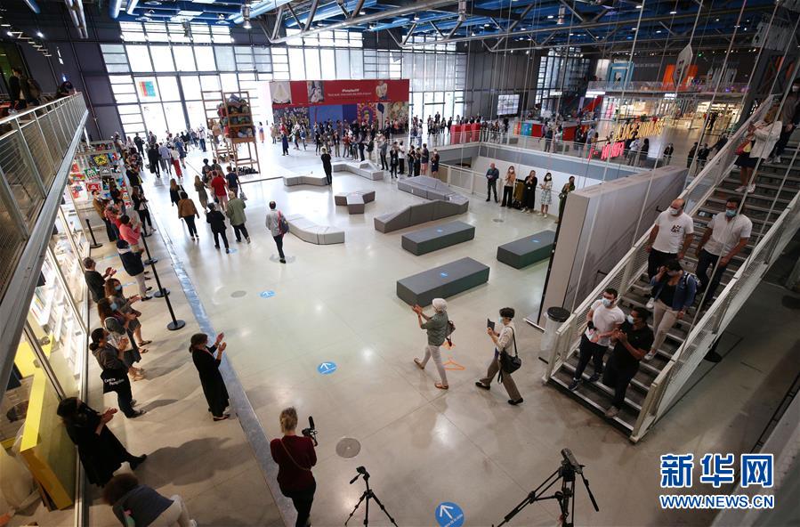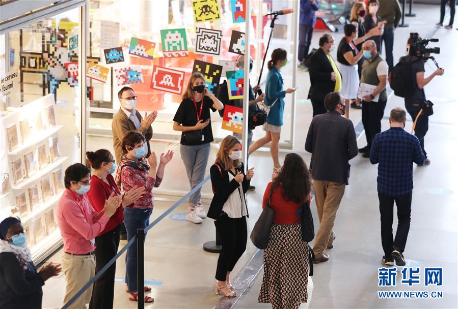 7月1日,法國(guó)巴黎蓬皮杜藝術(shù)中心的工作人員鼓掌歡迎參觀者。因新冠疫情關(guān)閉的法國(guó)巴黎蓬皮杜藝術(shù)中心于7月1日重新開(kāi)門迎客。目前,中心只開(kāi)放6層的臨時(shí)展區(qū)和4、5層的現(xiàn)代藝術(shù)常設(shè)展區(qū)。參觀者需提前網(wǎng)上預(yù)約參觀時(shí)段,11歲以上參觀者須佩戴口罩,參觀過(guò)程中保持安全距離。新華社記者高靜攝