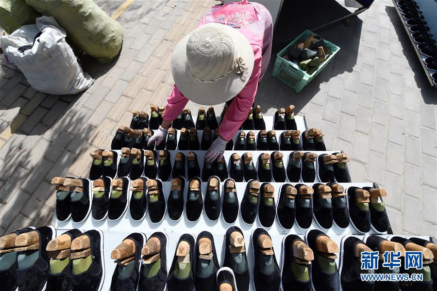 7月2日,臨夏縣百利布鞋加工農(nóng)民專業(yè)合作社員工在擺放布鞋。甘肅省臨夏回族自治州臨夏縣將布鞋加工定為重點(diǎn)扶持發(fā)展的產(chǎn)業(yè),采用“政府+公司+貧困戶”的產(chǎn)業(yè)扶貧模式,由政府主導(dǎo)、企業(yè)出資,在貧困村建設(shè)“扶貧車間”,吸納貧困群眾從事布鞋加工產(chǎn)業(yè)增加收入。截至2019年底,當(dāng)?shù)夭夹庸て髽I(yè)和加工戶遍及近百個(gè)行政村,從業(yè)人員達(dá)到4000多人,累計(jì)生產(chǎn)布鞋600多萬(wàn)雙,實(shí)現(xiàn)銷售收入2.32億元。新華社記者范培珅攝