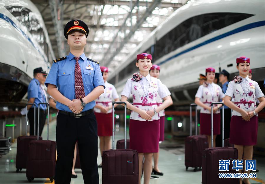 7月3日,擔(dān)任首發(fā)列車值乘工作的班組人員在貴陽亮相。 新華社記者 劉續(xù) 攝