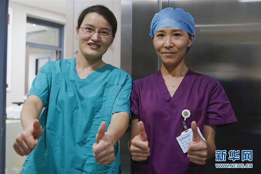 7月3日,中日友好醫(yī)院檢驗(yàn)科新冠核酸檢測(cè)實(shí)驗(yàn)室的閆克芹(左)和張?chǎng)卧诙虝何缧輹r(shí)脫下了防護(hù)服。新華社記者張玉薇攝