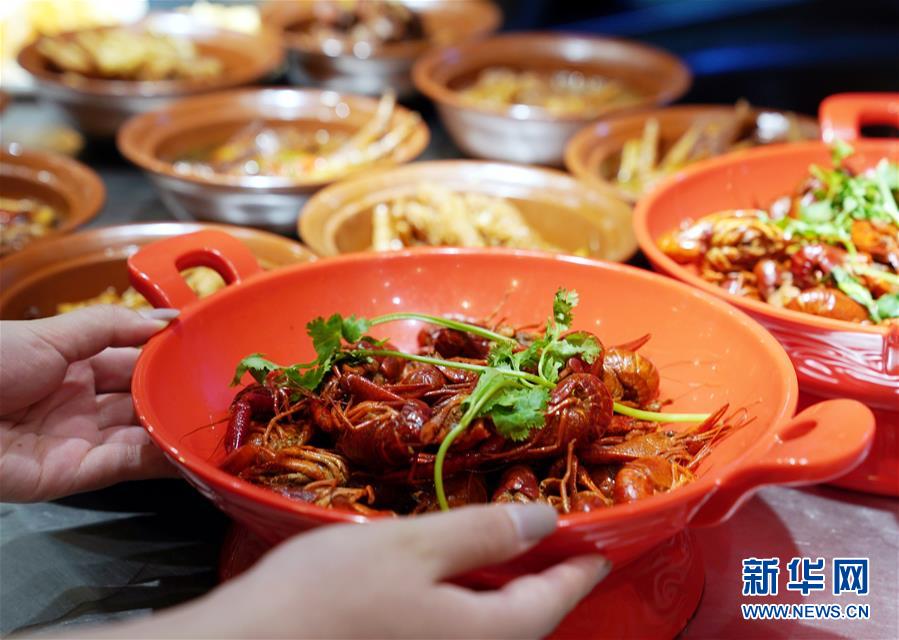 7月3日在上海豫園小吃城內(nèi)拍攝的小龍蝦菜肴。從7月第一個(gè)周末起,上海豫園原有的“豫園六點(diǎn)半”集市全面升級,煥彩燈光、演藝活動(dòng)和花車集市全線更新,讓市民和游客在觀燈、觀人、觀演的沉浸式體驗(yàn)中,享受夏日特色的“食玩”樂趣。新華社記者 劉穎 攝