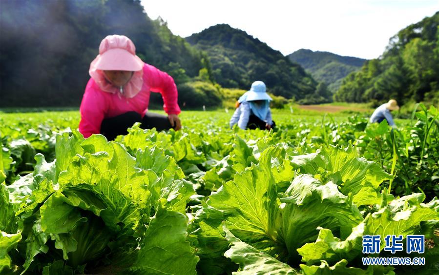 陜西太白縣咀頭鎮(zhèn)塘口村的村民在菜地里勞作(7月4日攝)。