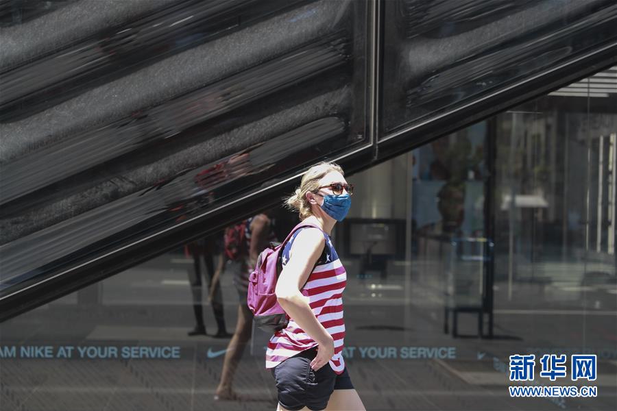 7月4日,一名女子從美國紐約第五大道一家尚未恢復(fù)營(yíng)業(yè)的店鋪前走過。當(dāng)日是美國獨(dú)立日,美國多地疫情仍面臨嚴(yán)峻形勢(shì)。美國約翰斯·霍普金斯大學(xué)實(shí)時(shí)統(tǒng)計(jì)數(shù)據(jù)顯示,美國累計(jì)新冠確診病例4日已超過280萬例。新華社記者王迎攝