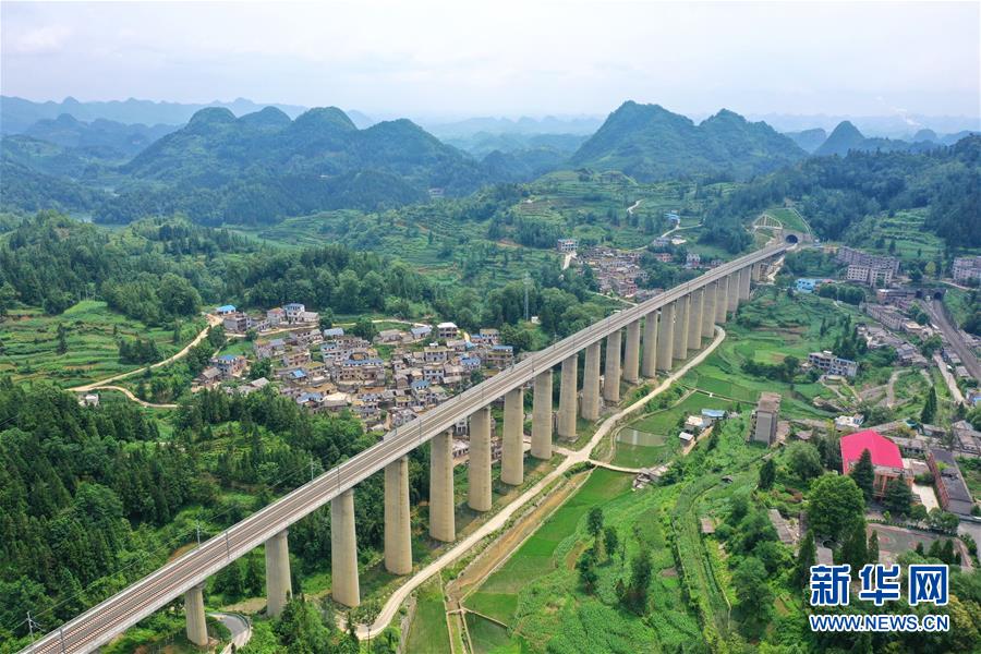 7月6日拍攝的安六鐵路岱港村特大橋(無人機照片)。當(dāng)日,新建貴州安六鐵路(安順至六盤水)聯(lián)調(diào)聯(lián)試工作進入收尾階段,開通前的各項準(zhǔn)備工作已基本就緒。安六鐵路線路全長約125公里,設(shè)計時速250公里,為國家I級雙線客運專線。建成投用后,貴陽至六盤水的鐵路旅行時間可從現(xiàn)在的3.5小時縮短為1小時左右,貴州省六盤水市將全面接入全國高鐵網(wǎng)。新華社記者劉續(xù)攝