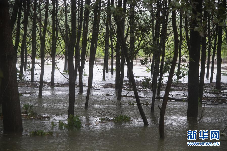 7月7日,上漲的江水淹沒(méi)武漢天興洲江邊的部分植被。新華社記者肖藝九攝
