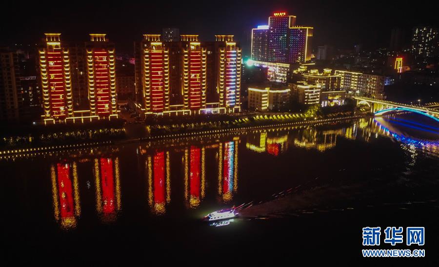 這是融安縣城夜色(7月7日攝,無人機(jī)照片)。夏夜的廣西融安縣城燈火璀璨,景色迷人。新華社記者張愛林?jǐn)z