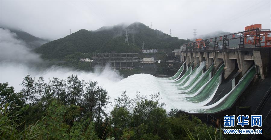 7月7日下午開啟7孔泄洪的新安江水庫(手機(jī)全景模式拍攝)。受持續(xù)降水影響,浙江新安江水庫水位持續(xù)快速上升。繼當(dāng)日10時(shí)開啟3孔、12時(shí)開啟5孔泄洪后,新安江水庫于16時(shí)增加到7孔泄洪。新安江水庫是華東地區(qū)最大的水庫,在錢塘江流域的防洪度汛中起到關(guān)鍵作用。新華社記者翁忻旸攝