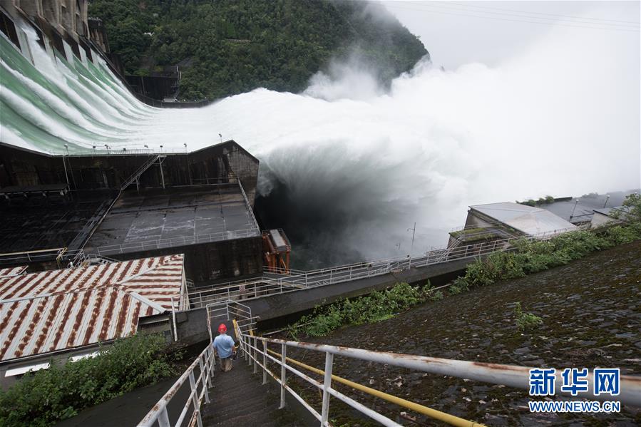 7月8日,新安江水庫(kù)開(kāi)啟9孔泄洪,新安江電廠工作人員在壩區(qū)巡視。新華社記者翁忻旸攝