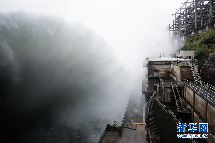 7月8日,新安江水庫開啟9孔泄洪,新安江電廠工作人員在壩區(qū)巡視。新華社記者翁忻旸攝