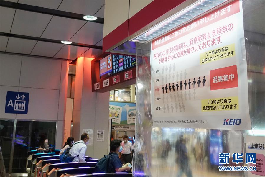 7月9日,日本東京新宿車站的一處入口上貼出告示,顯示該線路的人流量統(tǒng)計,建議乘客錯峰出行。據(jù)日本廣播協(xié)會電視臺9日統(tǒng)計,截至當?shù)貢r間9日20時40分,日本當日新增新冠確診病例354例,是5月2日以來該國單日新增確診首次超過300例,累計確診20767例,累計死亡982例。據(jù)統(tǒng)計,東京都當天新增確診224例,創(chuàng)當?shù)爻霈F(xiàn)疫情以來單日新增確診新高。新華社記者杜瀟逸攝