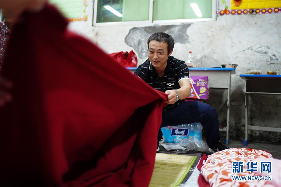 7月9日,在教室安置的村民將剛剛得到的寢具鋪在地上準(zhǔn)備睡覺(jué)。當(dāng)日,江西鄱陽(yáng)縣鄱陽(yáng)鎮(zhèn)因洪水受災(zāi)的村民被轉(zhuǎn)移到多個(gè)集中安置點(diǎn)。在鄱陽(yáng)縣五一中心學(xué)校安置點(diǎn),志愿者和工作人員接到任務(wù)后不到十小時(shí)內(nèi),為被轉(zhuǎn)移村民布置了28間教室,供519人安頓,并為村民發(fā)放褥子、床單、枕頭、盒飯、飲用水等物資。新華社記者周密攝