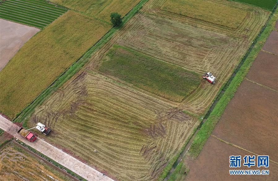 7月11日,在湖南省衡陽市衡陽縣臺(tái)源鎮(zhèn)臺(tái)九村,村民駕駛收割機(jī)收割早稻(無人機(jī)照片)。近日,湖南各地農(nóng)村陸續(xù)進(jìn)入“雙搶”季,農(nóng)民緊抓農(nóng)時(shí),搶收搶種,力爭糧食穩(wěn)產(chǎn)豐收。新華社記者趙眾志攝