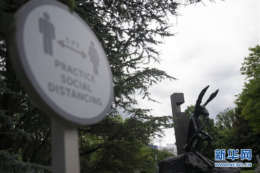 7月11日,在美國(guó)華盛頓的國(guó)家藝術(shù)畫(huà)廊雕塑公園,一座雕塑旁立著保持社交距離的提示牌。美國(guó)約翰斯·霍普金斯大學(xué)11日發(fā)布的新冠疫情最新統(tǒng)計(jì)數(shù)據(jù)顯示,截至美國(guó)東部時(shí)間11日18時(shí)34分(北京時(shí)間12日6時(shí)34分),美國(guó)累計(jì)確診病例3242073例。新華社記者劉杰攝
