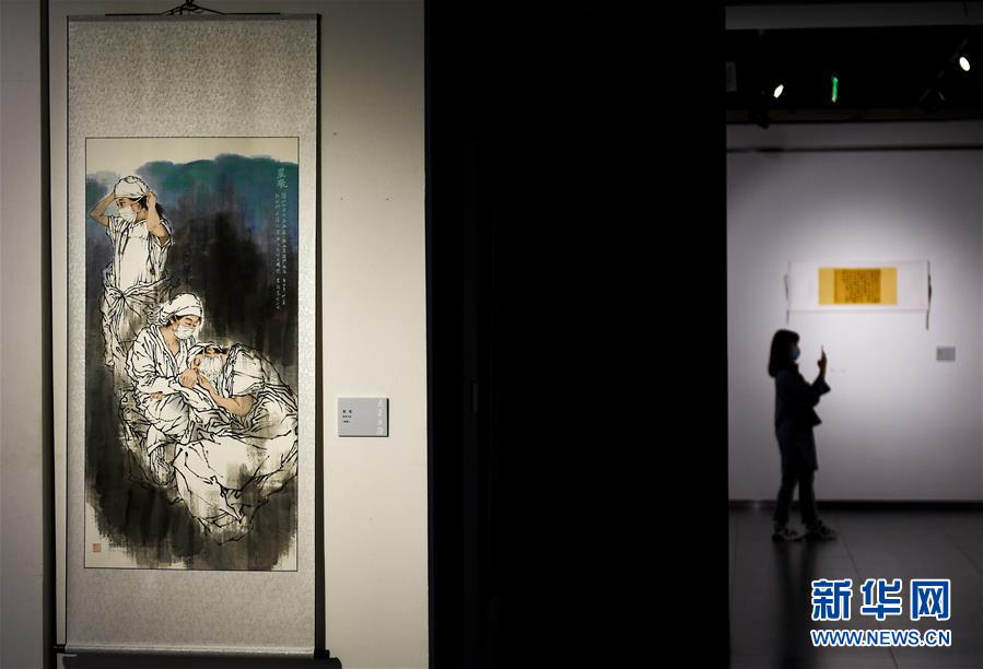 7月11日,觀眾在吉林省抗疫主題美術(shù)·攝影作品展上參觀。近日,“大愛無疆——吉林省抗疫主題美術(shù)·攝影作品展”在吉林省工藝美術(shù)館與觀眾見面。展覽共展出抗擊新冠肺炎疫情主題書法、國畫、油畫、攝影等作品367件(組)。新華社 記者許暢 攝