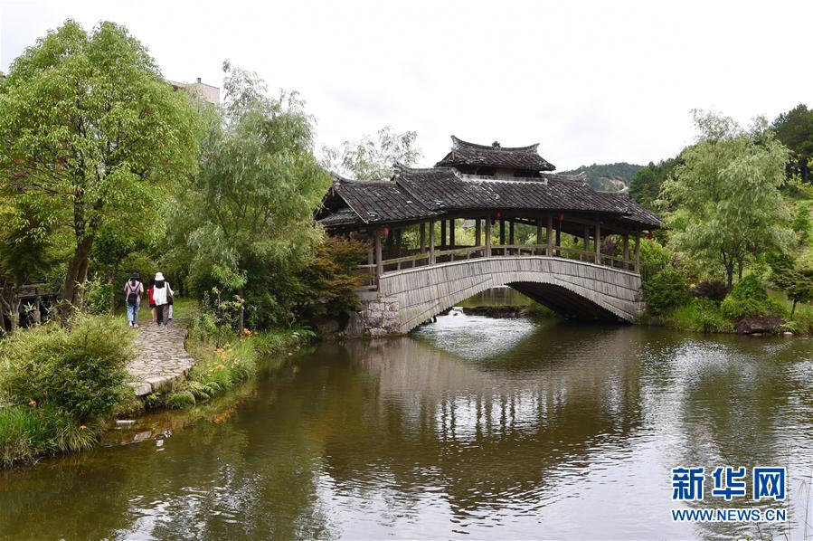 7月3日,游人前往浦源村鯉魚(yú)溪上游的一座傳統(tǒng)廊橋參觀游覽。新華社記者 姜克紅 攝