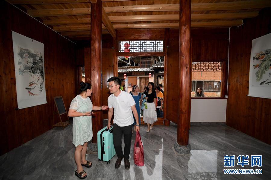 7月3日,來(lái)自福州的游客準(zhǔn)備入住浦源村鯉魚(yú)溪畔的一家民宿。新華社記者 姜克紅 攝