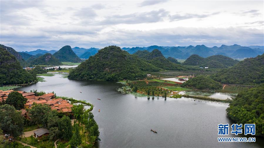 這是7月9日拍攝的普者黑國(guó)家濕地公園一景(無(wú)人機(jī)照片)。新華社記者 胡超 攝