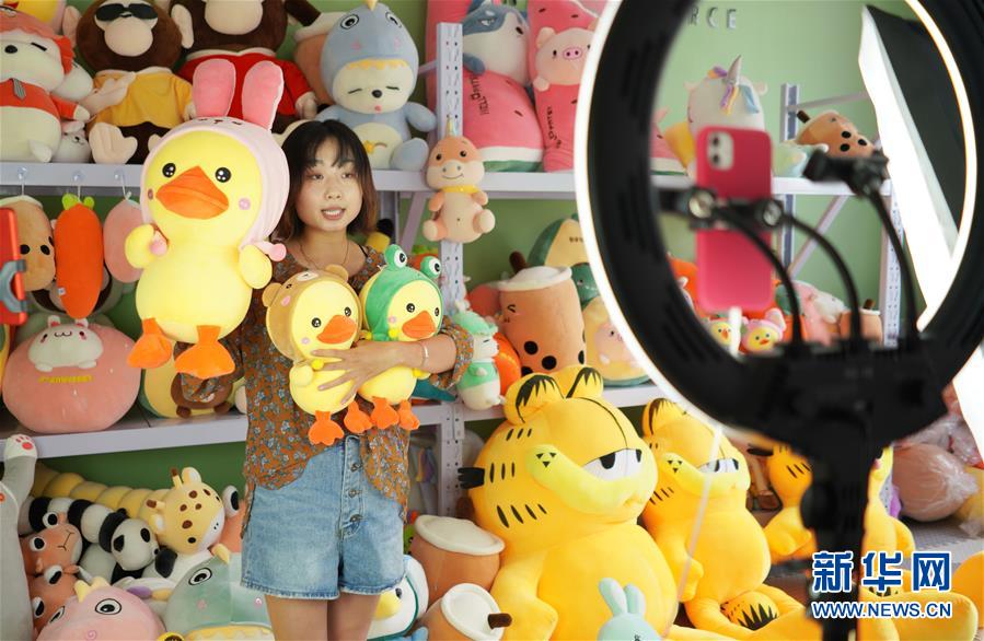 7月13日,河北省內(nèi)丘縣一家玩具生產(chǎn)企業(yè)工作人員通過網(wǎng)絡(luò)直播銷售毛絨玩具。近年來,河北省內(nèi)丘縣積極拓寬農(nóng)村留守婦女就業(yè)創(chuàng)業(yè)渠道,通過開展就業(yè)技能培訓(xùn),對(duì)接用工企業(yè)為農(nóng)村留守婦女搭建就業(yè)平臺(tái),吸納農(nóng)村婦女在家門口穩(wěn)定就業(yè)增收,實(shí)現(xiàn)顧家、賺錢兩不誤。新華社記者 朱旭東 攝