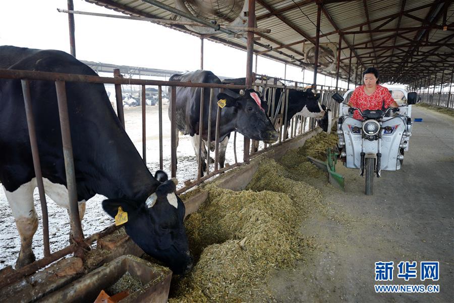7月11日,河北省清河縣永興奶牛養(yǎng)殖場(chǎng)的工人正在工作。近年來(lái),河北省清河縣將扶貧工作與現(xiàn)代農(nóng)業(yè)結(jié)合,以龍頭企業(yè)為引領(lǐng),成立合作社,鼓勵(lì)貧困戶(hù)利用扶貧資金入股奶牛養(yǎng)殖場(chǎng),幫助他們常年獲得穩(wěn)定收益。同時(shí),貧困戶(hù)農(nóng)閑時(shí)還可到產(chǎn)業(yè)園區(qū)打工,既拿股金,又掙薪金,實(shí)現(xiàn)“造血式”脫貧。新華社記者 牟宇 攝